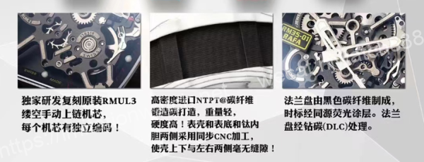 1:機芯:獨家研發復刻原裝RMUL3縷空手動上鍊機芯,每個機芯有獨立編碼!