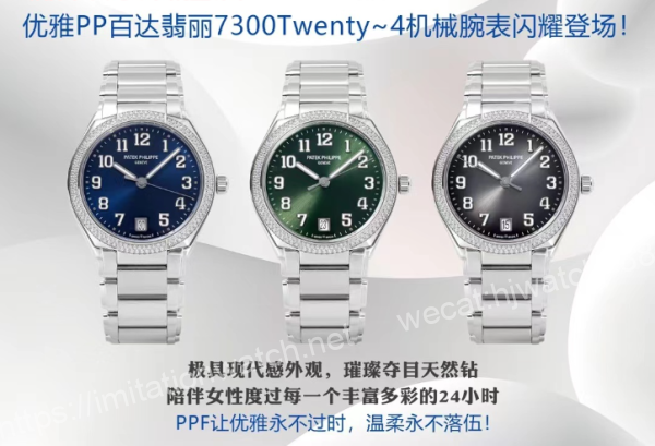 PPF出品 優雅PP百達翡麗7300Twenty~4機械腕錶閃耀登場! 極具現代感外觀,璀璨奪目天然鑽,陪伴女性度過每一個豐富多彩的24小時。