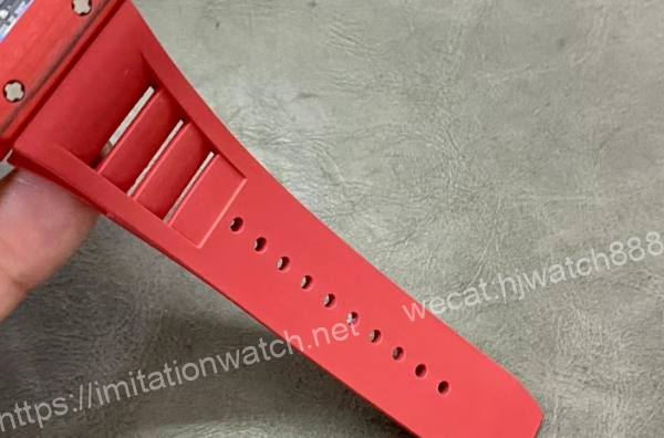 3、細節到位:錶殼內罩左側內壁和原裝一樣印有RM052鋼印,右眼齒輪的大小和深度接近原裝,額頭中心寶石紅潤剔透,磨砂表扣、進口泰國原料橡膠錶帶;
