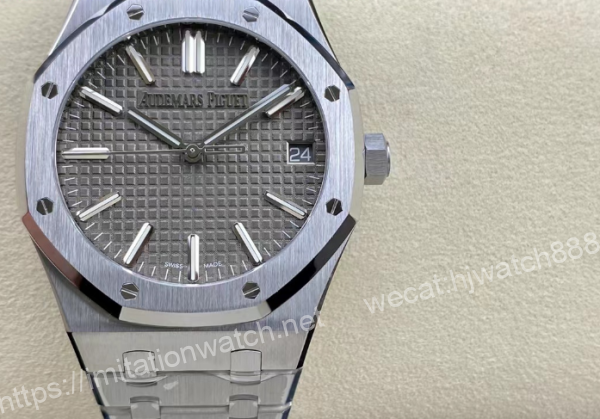 字面依舊是特有的方形紋路,12 點鐘位置的24K 金立體「Audemars Piguet」標誌採用電鍍生成法(類似3D 列印)製作而成,取代過去的立體「AP」標誌及印刷愛彼字樣。