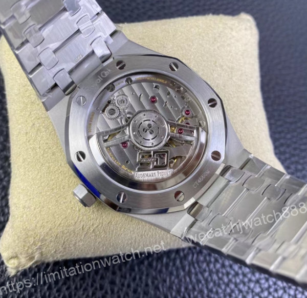 機芯的22K 玫瑰金專屬擺陀上,亦會一樣有「50th Anniversary」的字樣,此擺陀透過鏤空巧技呈現50 週年標誌及愛彼標誌雕刻,並與錶殼一樣經過緞面打磨與亮面拋光交錯處理!而且腕錶有將底蓋進一步整合到錶殼中,令佩戴起來服貼舒適,更貼合手腕弧度。