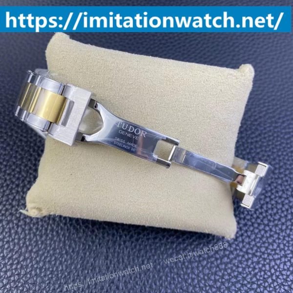整體間金材質打造,對於追求奢華感但不想太過高調的朋友來說是很不錯的選擇。黃金旋入式表冠上飾有帝舵表經典的浮雕玫瑰標誌,辨識度很高。
