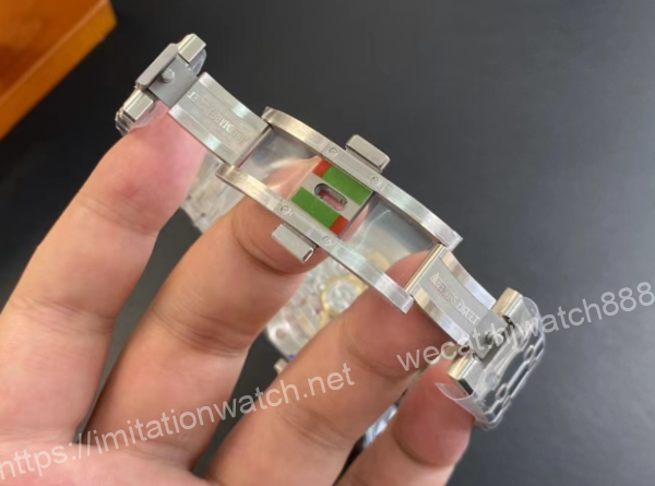 3.鋼帶的做工無可挑剔,比市面上任何鋼帶錶做工均要更上一層樓,鋼帶頭粒和表頭銜接的“緩衝帶”的鬆緊程度與正品一模一樣。