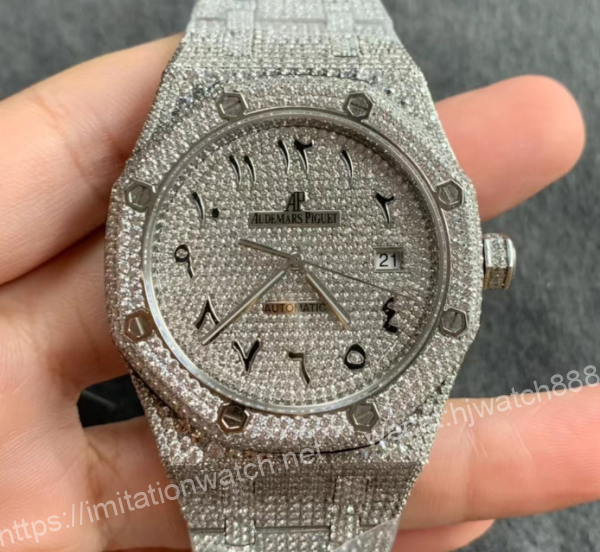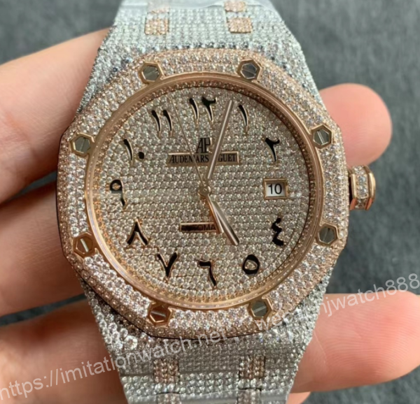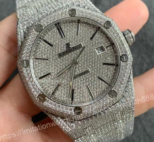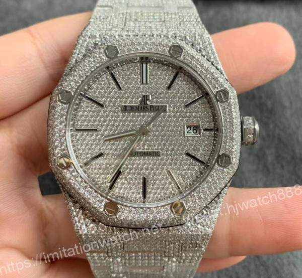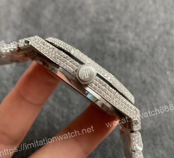 歷經重重工藝,終於大功告成!整表密集鑲滿最頂級的施華洛世奇美鑽,包括鋼帶側邊也是滿鑲鑽,嘗試了無數次的加工工藝,追求奢華至極的無敵質感!不惜一切的成本,終於打造出目前最豪華的15400滿天星。秒殺其它現有版本的細節和做工!