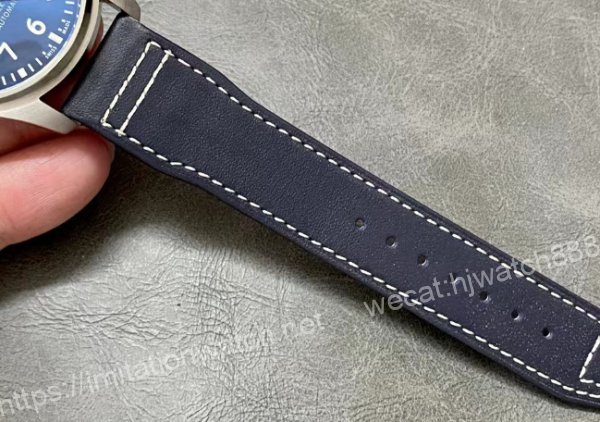 V7廠此錶盤與原廠同樣,仍配備通透度同步原廠的進口雙面防反光凸狀藍寶石鏡面,刻度和時標依然保持白色印製工藝,與馬克18的區別增加了3、6、9 、12時標的長度,夜光條變化成夜光圖層,阿拉伯數字時標則整體向錶盤中央靠近,12點「IWC」標誌略微上移,三角刻度也改為水滴夜光呈現全新的視覺比例。 日曆統一白底黑字階梯視窗也位同數字的一個圓軌道上,與背景形成更醒目對比,盤面上的螢光元素和指針在任何光線條件下,都能確保可讀性。 時針、分針現在經過鍍銠處理,並且指針針尾有稍微做彎(註:有別於市場版本,v7細節把控向來嚴謹,放大來看亦無可挑剔)