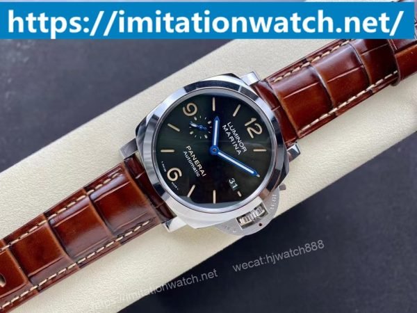 錶盤採用沛納海相對少見的綠色太陽放射紋處理,錶盤顏色隨光線變化而變化,光線直射錶盤是軍綠色,背光看像是黑色錶盤。搭配藍鋼指針以及米黃色的夜光塗料,多彩的設計更能鮮明的映入在佩戴者眼簾。戴著,好玩又好看。